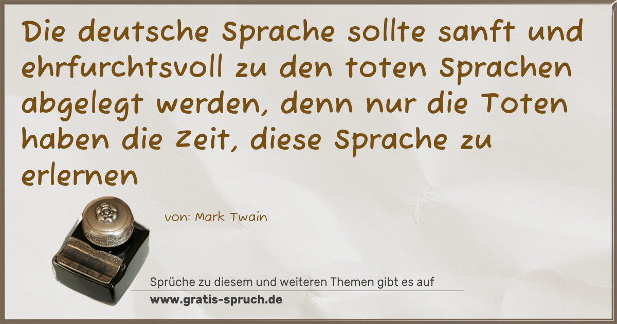 Die deutsche Sprache sollte sanft und ehrfurchtsvoll zu den toten Sprachen abgelegt werden, denn nur die Toten haben die Zeit, diese Sprache zu erlernen