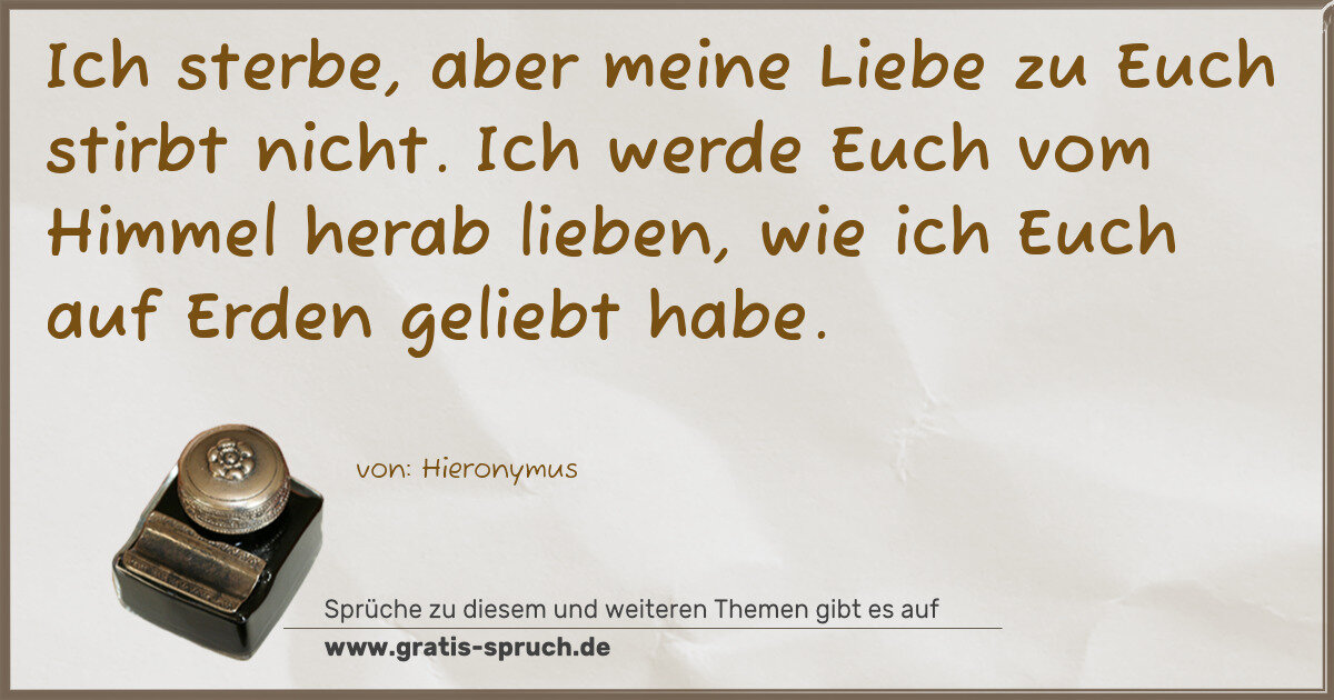 Ich sterbe, aber meine Liebe zu Euch stirbt nicht. Ich werde Euch vom Himmel herab lieben, wie ich Euch auf Erden geliebt habe.