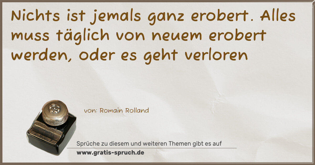 Nichts ist jemals ganz erobert. Alles muss täglich von neuem erobert werden, oder es geht verloren