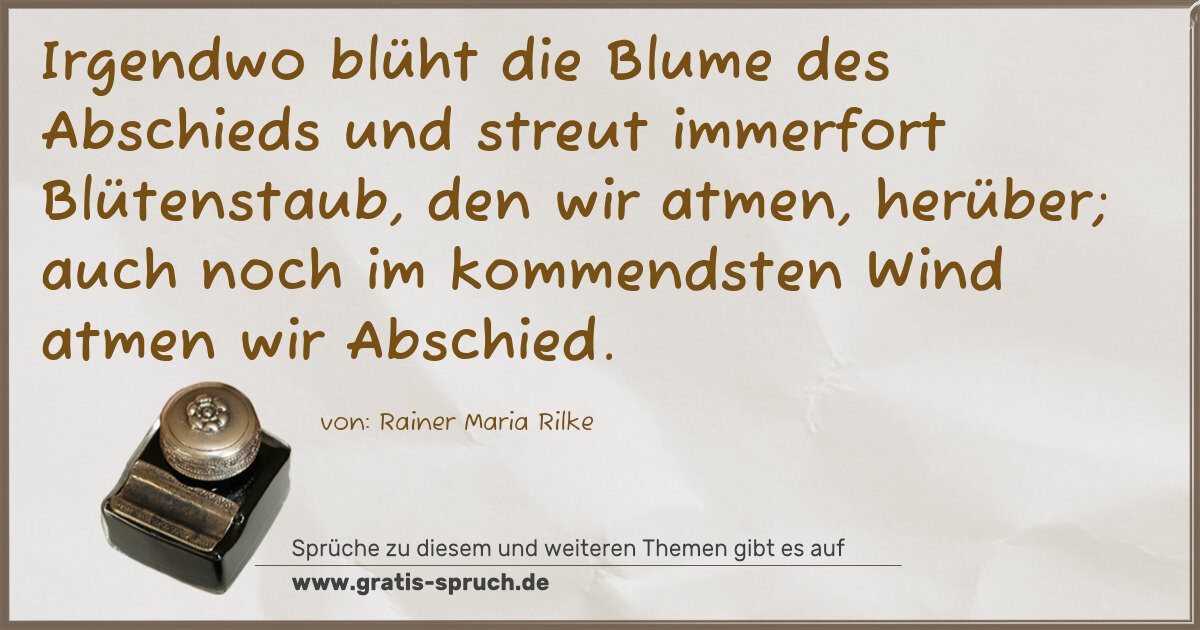Irgendwo blüht die Blume des Abschieds und streut immerfort Blütenstaub, den wir atmen, herüber; auch noch im kommendsten Wind atmen wir Abschied.