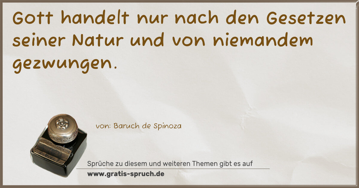 Gott handelt nur nach den Gesetzen seiner Natur und von niemandem gezwungen.
