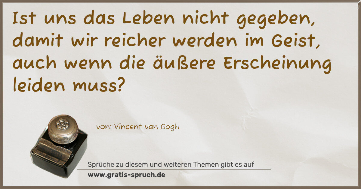 Ist uns das Leben nicht gegeben, damit wir reicher werden im Geist, auch wenn die äußere Erscheinung leiden muss?