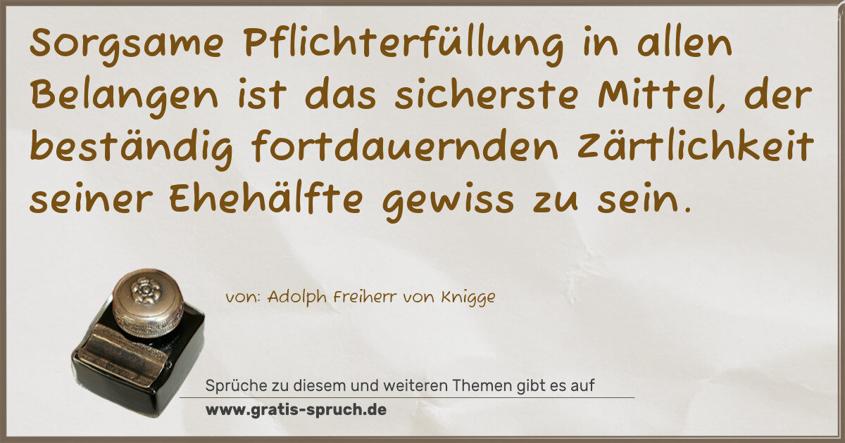 Sorgsame Pflichterfüllung in allen Belangen ist das sicherste Mittel, der beständig fortdauernden Zärtlichkeit seiner Ehehälfte gewiss zu sein.