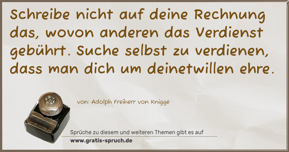 Schreibe nicht auf deine Rechnung das, wovon anderen das Verdienst gebührt. Suche selbst zu verdienen, dass man dich um deinetwillen ehre.