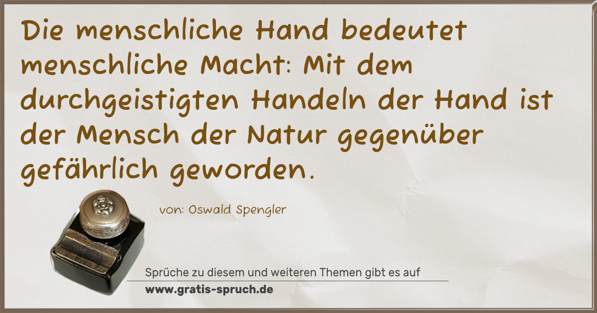 Die menschliche Hand bedeutet menschliche Macht: Mit dem durchgeistigten Handeln der Hand ist der Mensch der Natur gegenüber gefährlich geworden.