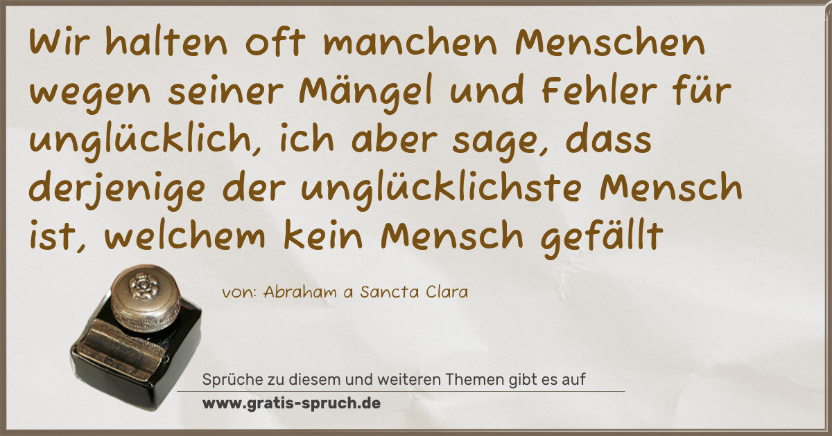 Wir halten oft manchen Menschen wegen seiner Mängel und Fehler für unglücklich, ich aber sage, dass derjenige der unglücklichste Mensch ist, welchem kein Mensch gefällt