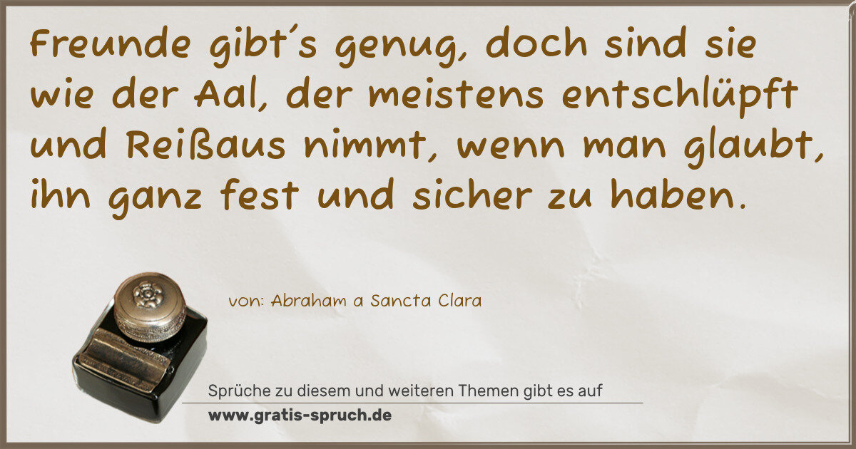 Freunde gibt's genug, doch sind sie wie der Aal, der meistens entschlüpft und Reißaus nimmt, wenn man glaubt, ihn ganz fest und sicher zu haben.