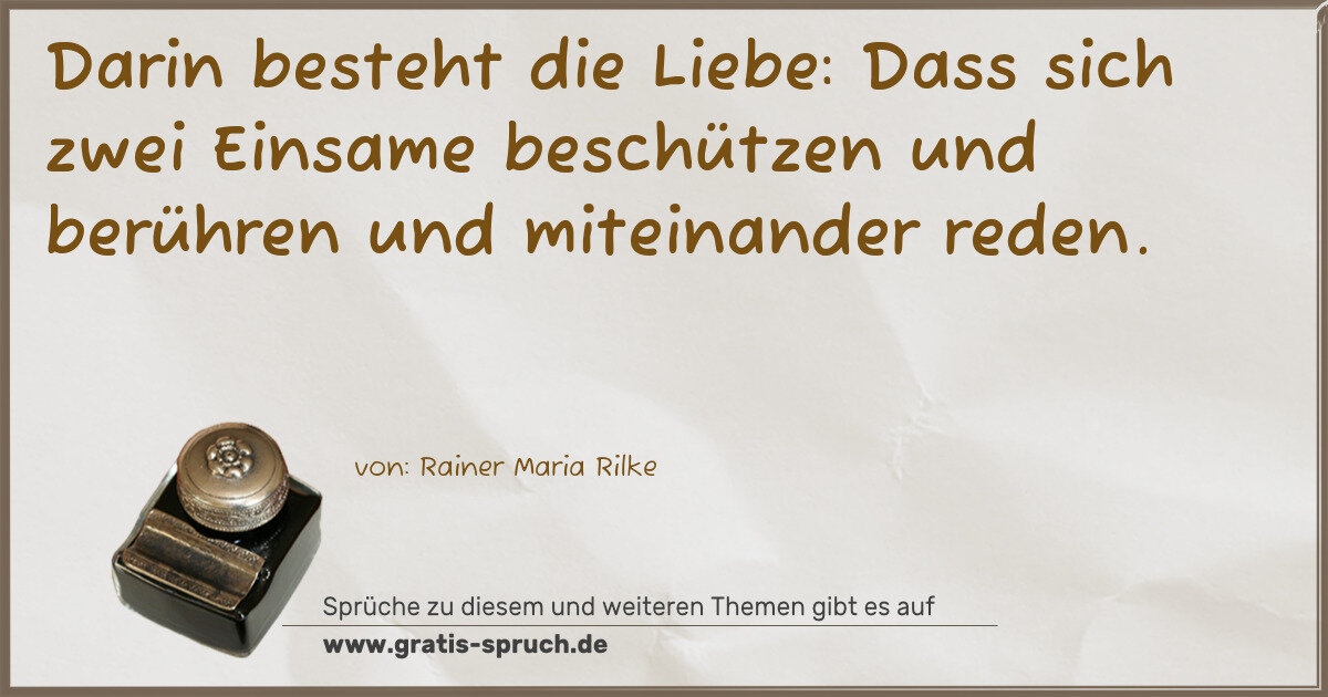 Darin besteht die Liebe: Dass sich zwei Einsame beschützen und berühren und miteinander reden.