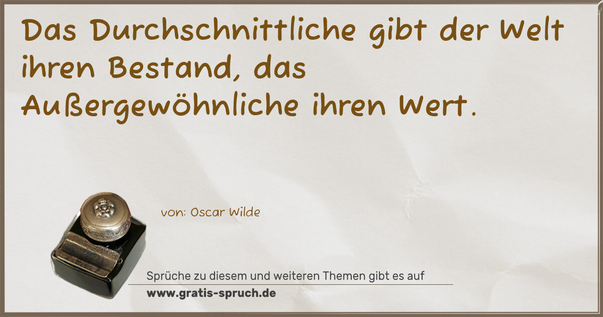 Das Durchschnittliche gibt der Welt ihren Bestand, das Außergewöhnliche ihren Wert.