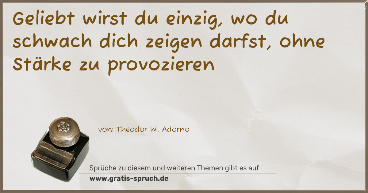 Geliebt wirst du einzig, wo du schwach dich zeigen darfst, ohne Stärke zu provozieren