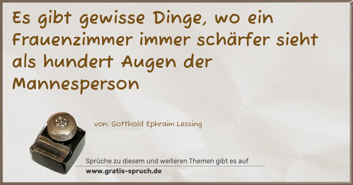 Es gibt gewisse Dinge, wo ein Frauenzimmer immer schärfer sieht als hundert Augen der Mannesperson