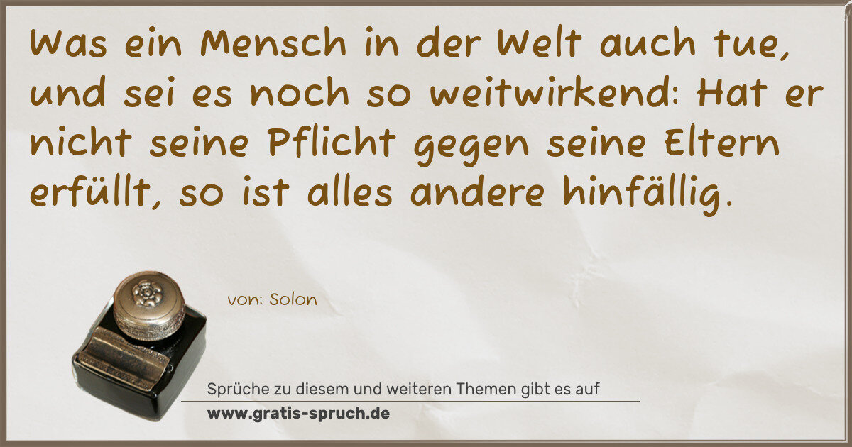 Was ein Mensch in der Welt auch tue, und sei es noch so weitwirkend: Hat er nicht seine Pflicht gegen seine Eltern erfüllt, so ist alles andere hinfällig.