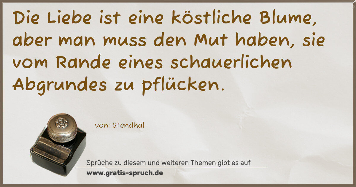 Die Liebe ist eine köstliche Blume, aber man muss den Mut haben, sie vom Rande eines schauerlichen Abgrundes zu pflücken.