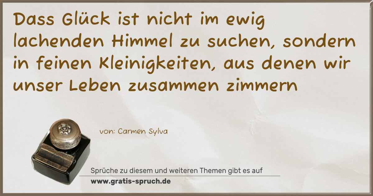 Dass Glück ist nicht im ewig lachenden Himmel zu suchen, sondern in feinen Kleinigkeiten, aus denen wir unser Leben zusammen zimmern