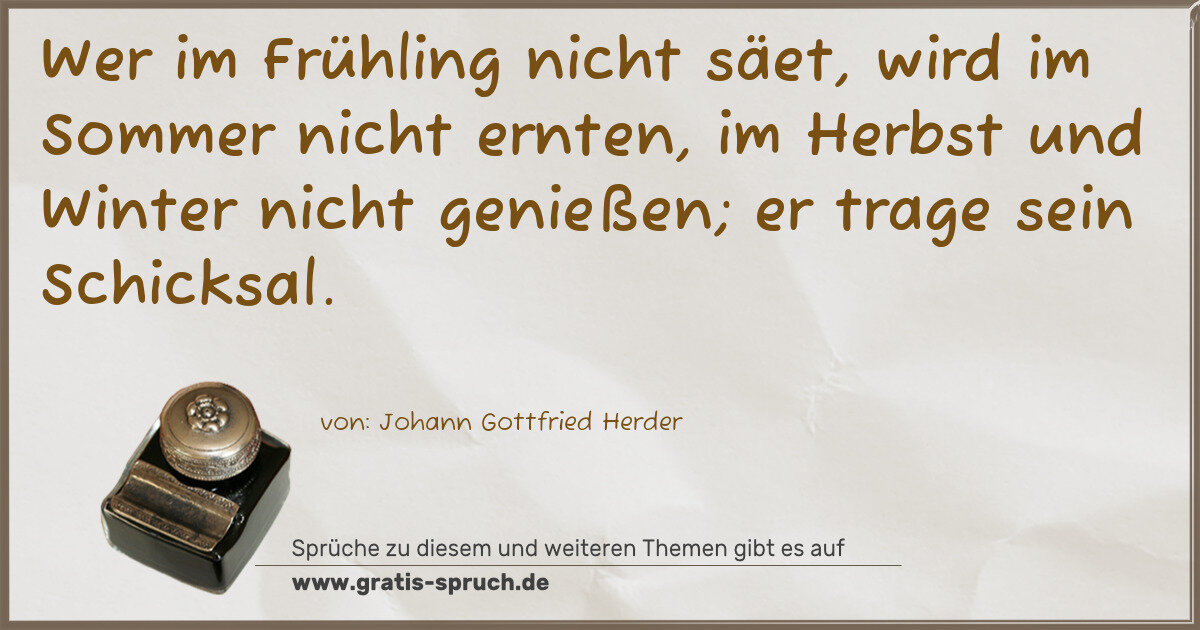 Wer im Frühling nicht säet, wird im Sommer nicht ernten, im Herbst und Winter nicht genießen; er trage sein Schicksal.