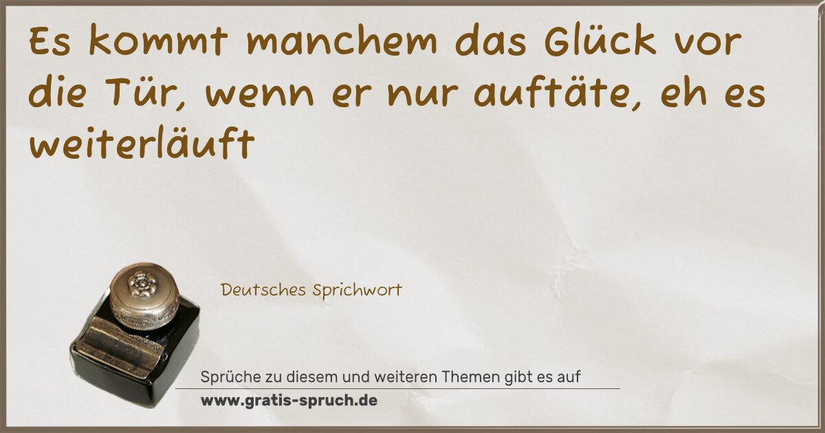 Es kommt manchem das Glück vor die Tür, wenn er nur auftäte, eh es weiterläuft