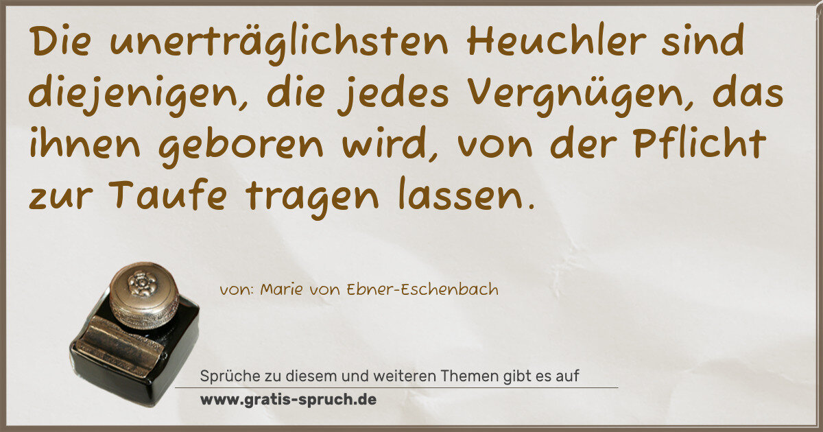 Die unerträglichsten Heuchler sind diejenigen, die jedes Vergnügen, das ihnen geboren wird, von der Pflicht zur Taufe tragen lassen.