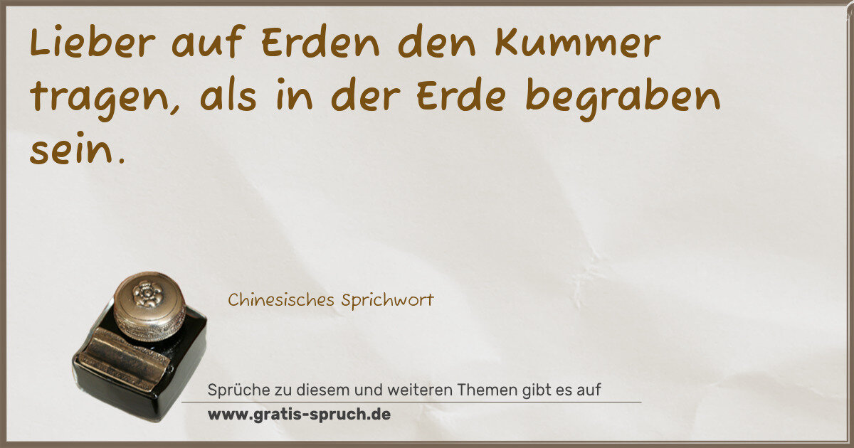 Lieber auf Erden den Kummer tragen, als in der Erde begraben sein.