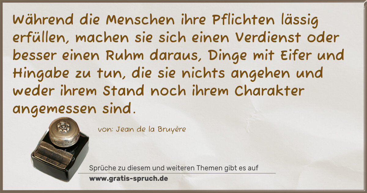 Während die Menschen ihre Pflichten lässig erfüllen, machen sie sich einen Verdienst oder besser einen Ruhm daraus, Dinge mit Eifer und Hingabe zu tun, die sie nichts angehen und weder ihrem Stand noch ihrem Charakter angemessen sind.