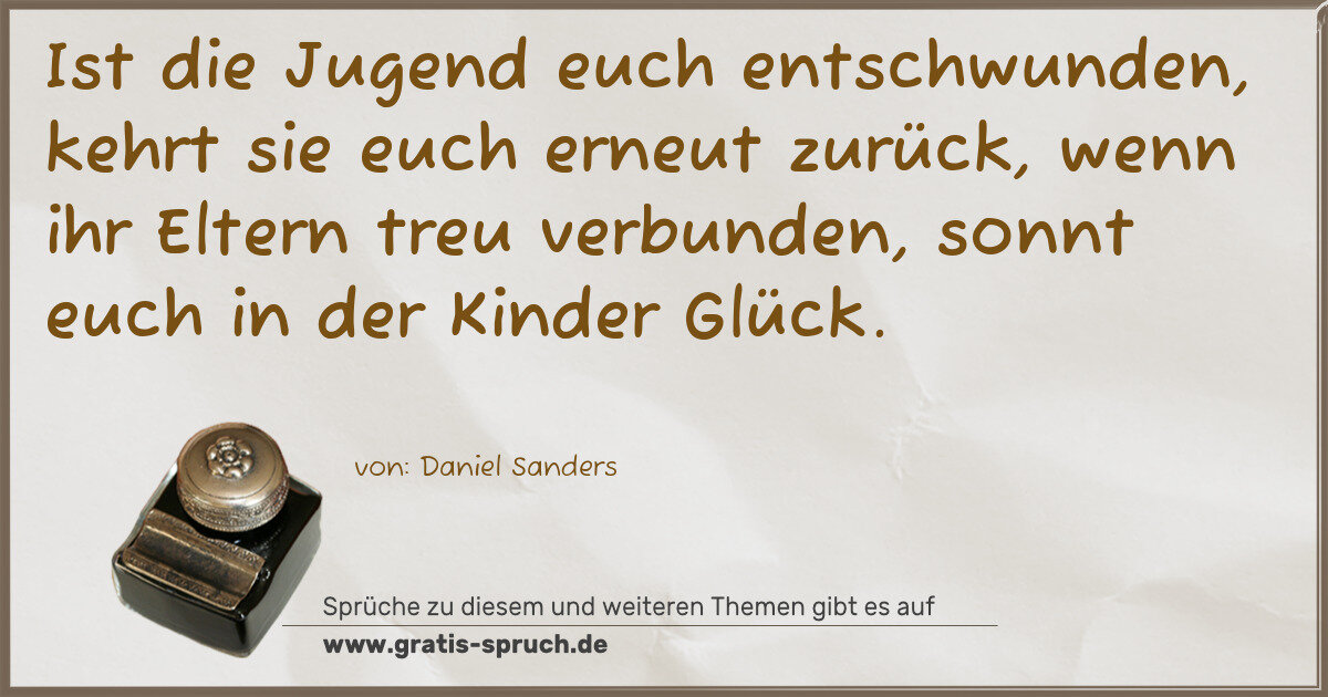 Ist die Jugend euch entschwunden, kehrt sie euch erneut zurück, wenn ihr Eltern treu verbunden, sonnt euch in der Kinder Glück.