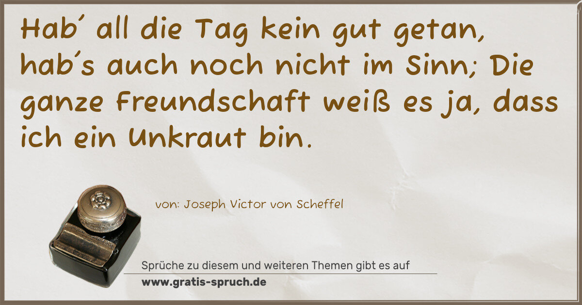 Hab' all die Tag kein gut getan, hab's auch noch nicht im Sinn; Die ganze Freundschaft weiß es ja, dass ich ein Unkraut bin.