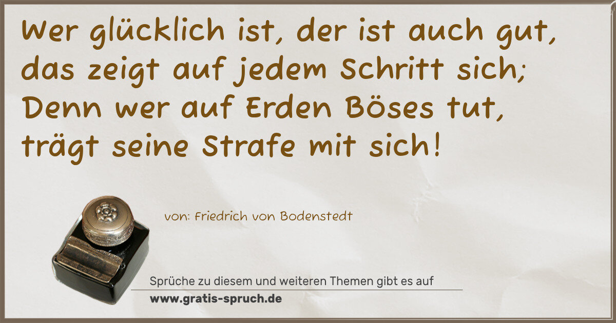 Wer glücklich ist, der ist auch gut, das zeigt auf jedem Schritt sich; Denn wer auf Erden Böses tut, trägt seine Strafe mit sich!