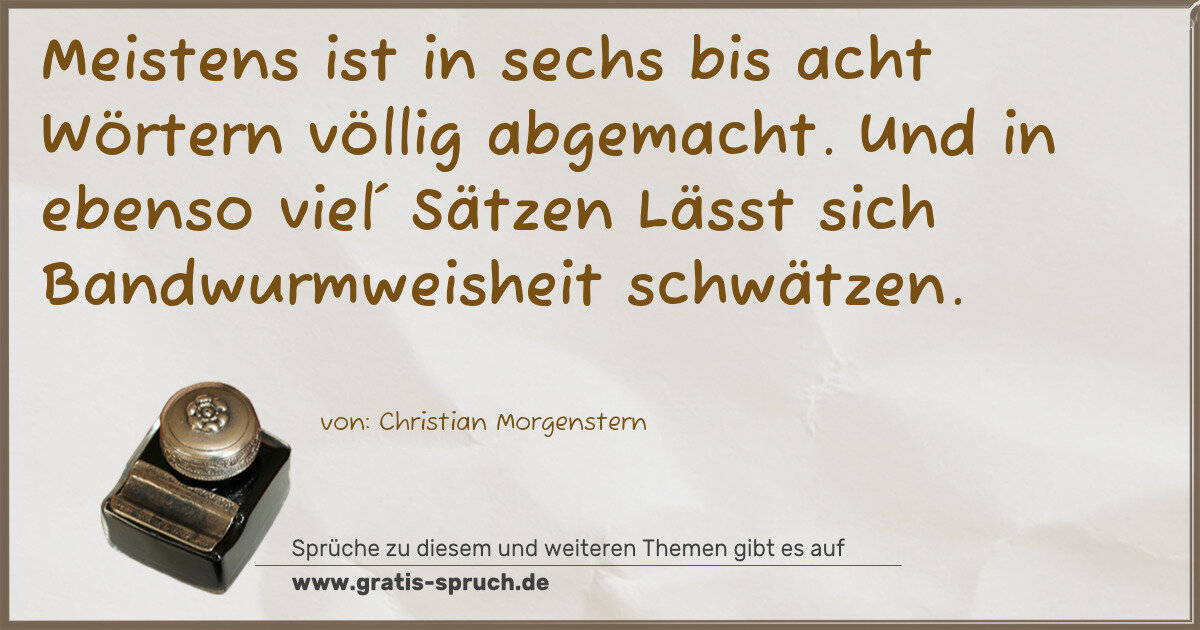 Meistens ist in sechs bis acht Wörtern völlig abgemacht. Und in ebenso viel´ Sätzen Lässt sich Bandwurmweisheit schwätzen.