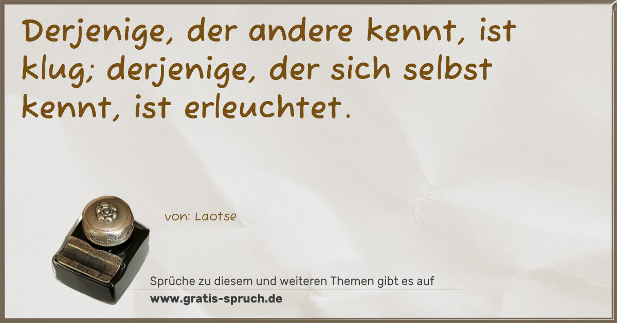 Derjenige, der andere kennt, ist klug; derjenige, der sich selbst kennt, ist erleuchtet.