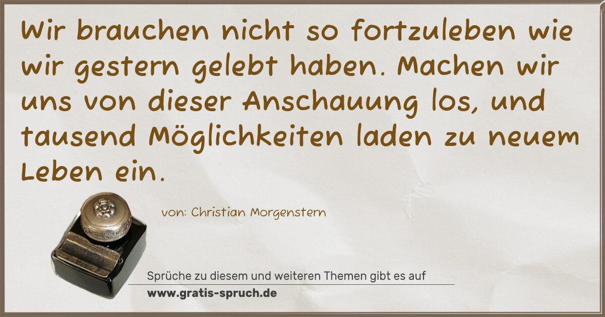 Wir brauchen nicht so fortzuleben wie wir gestern gelebt haben. Machen wir uns von dieser Anschauung los, und tausend Möglichkeiten laden zu neuem Leben ein.