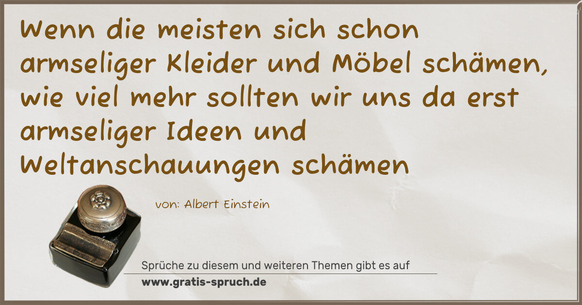 Wenn die meisten sich schon armseliger Kleider und Möbel schämen, wie viel mehr sollten wir uns da erst armseliger Ideen und Weltanschauungen schämen
