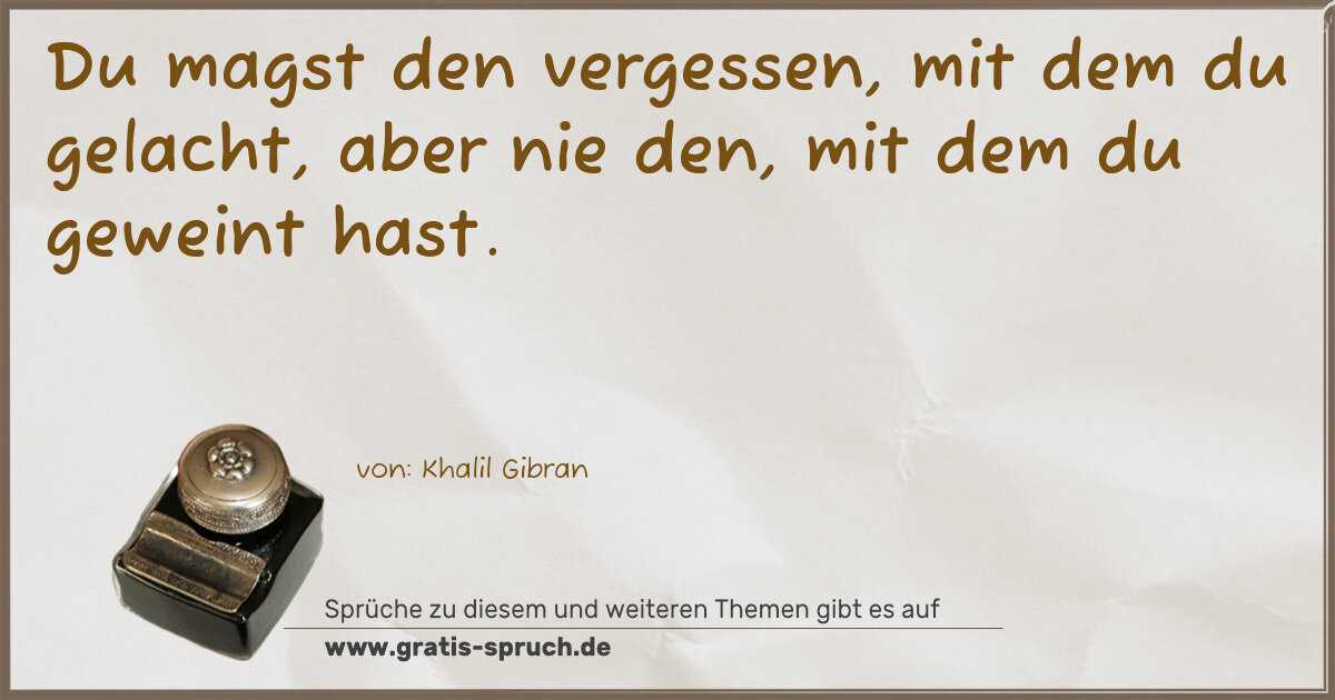 Du magst den vergessen, mit dem du gelacht, aber nie den, mit dem du geweint hast.