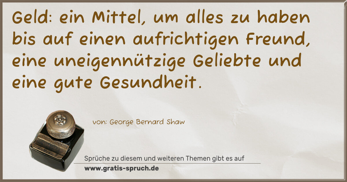 Geld: ein Mittel, um alles zu haben bis auf einen aufrichtigen Freund, eine uneigennützige Geliebte und eine gute Gesundheit.