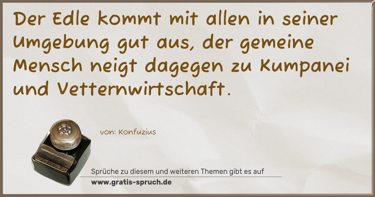 Der Edle kommt mit allen in seiner Umgebung gut aus, der gemeine Mensch neigt dagegen zu Kumpanei und Vetternwirtschaft.
