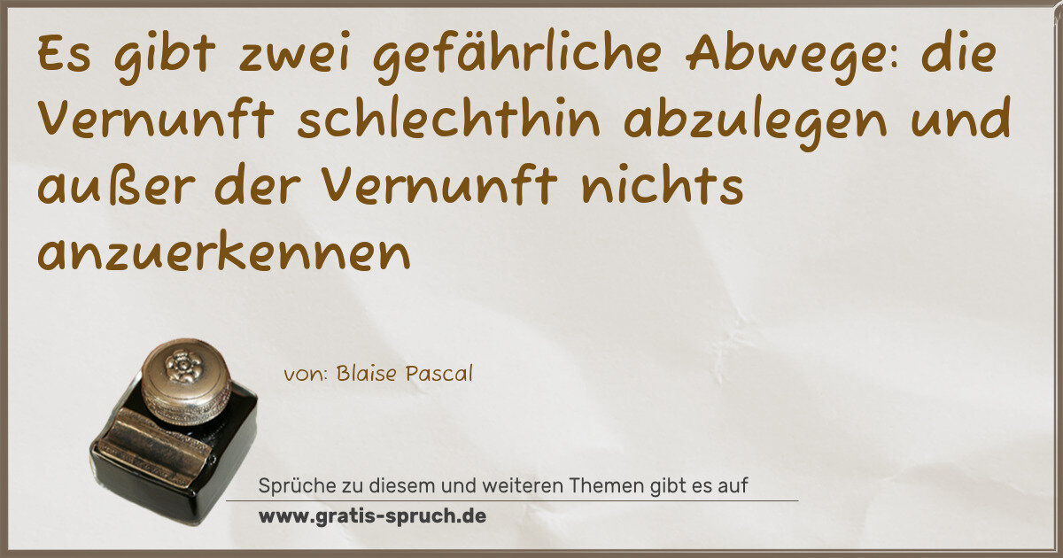 Es gibt zwei gefährliche Abwege: die Vernunft schlechthin abzulegen und außer der Vernunft nichts anzuerkennen