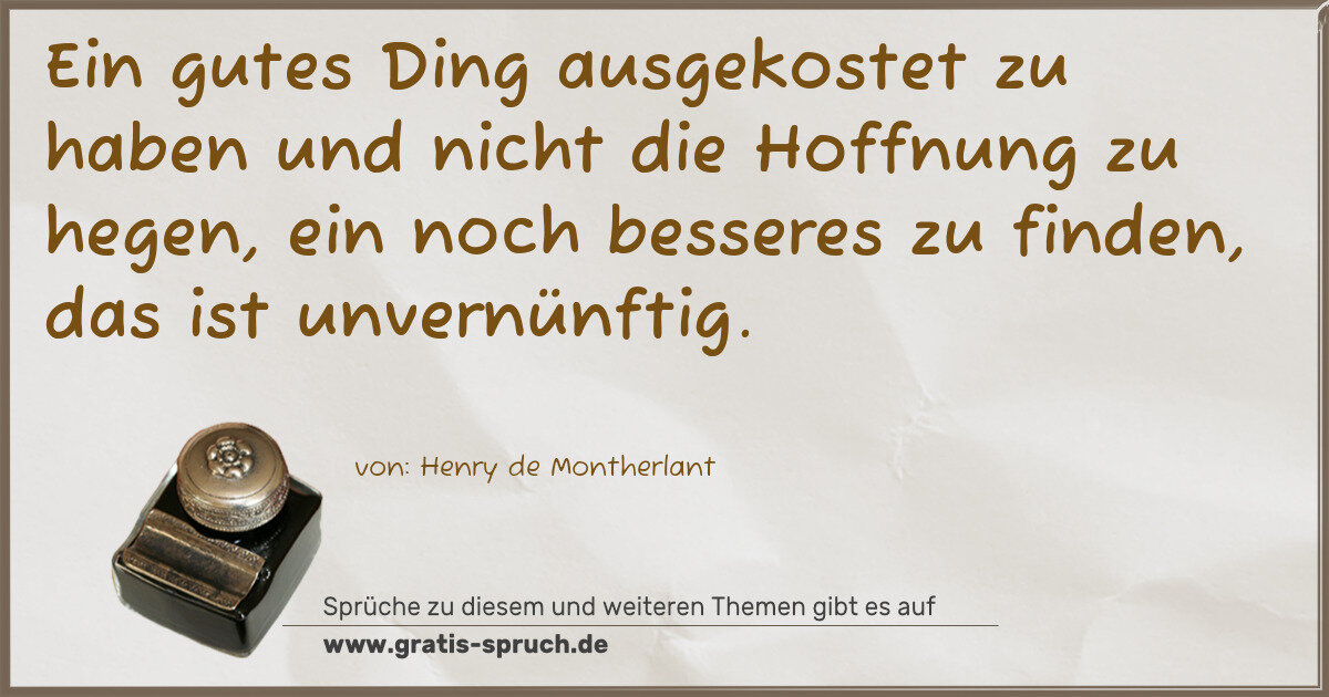 Ein gutes Ding ausgekostet zu haben und nicht die Hoffnung zu hegen, ein noch besseres zu finden, das ist unvernünftig.