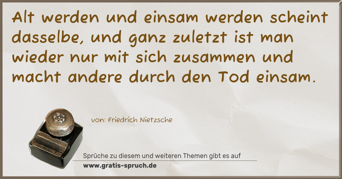 Alt werden und einsam werden scheint dasselbe, und ganz zuletzt ist man wieder nur mit sich zusammen und macht andere durch den Tod einsam.