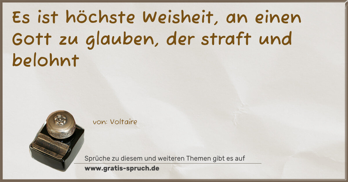 Es ist höchste Weisheit, an einen Gott zu glauben, der straft und belohnt