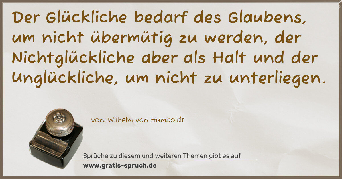 Der Glückliche bedarf des Glaubens, um nicht übermütig zu werden, der Nichtglückliche aber als Halt und der Unglückliche, um nicht zu unterliegen.