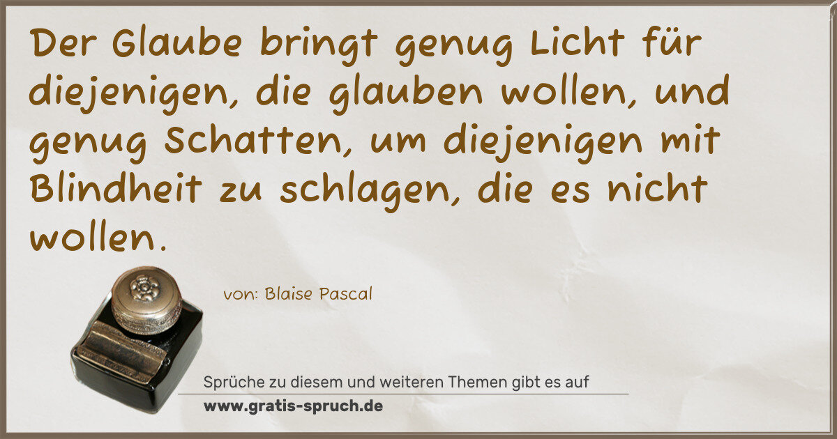 Der Glaube bringt genug Licht für diejenigen, die glauben wollen, und genug Schatten, um diejenigen mit Blindheit zu schlagen, die es nicht wollen.