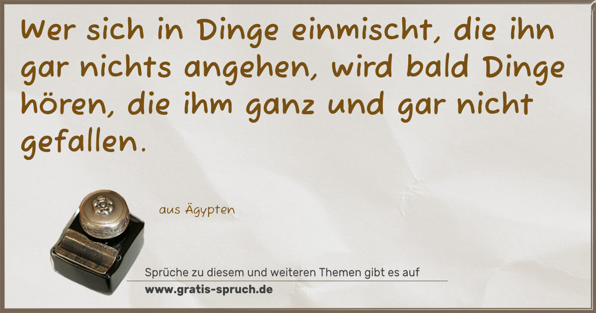 Wer sich in Dinge einmischt, die ihn gar nichts angehen, wird bald Dinge hören, die ihm ganz und gar nicht gefallen.