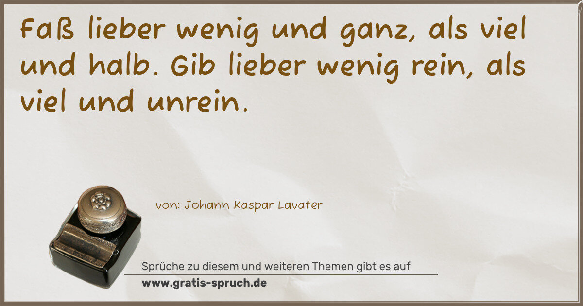 Faß lieber wenig und ganz, als viel und halb. Gib lieber wenig rein, als viel und unrein.