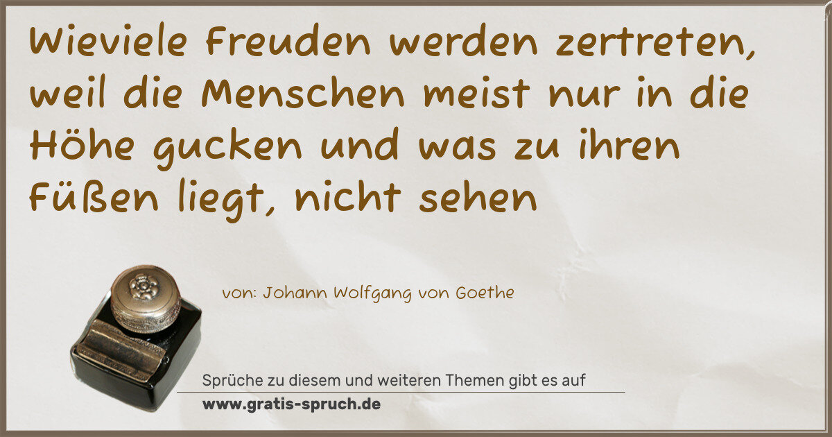 Wieviele Freuden werden zertreten, weil die Menschen meist nur in die Höhe gucken und was zu ihren Füßen liegt, nicht sehen