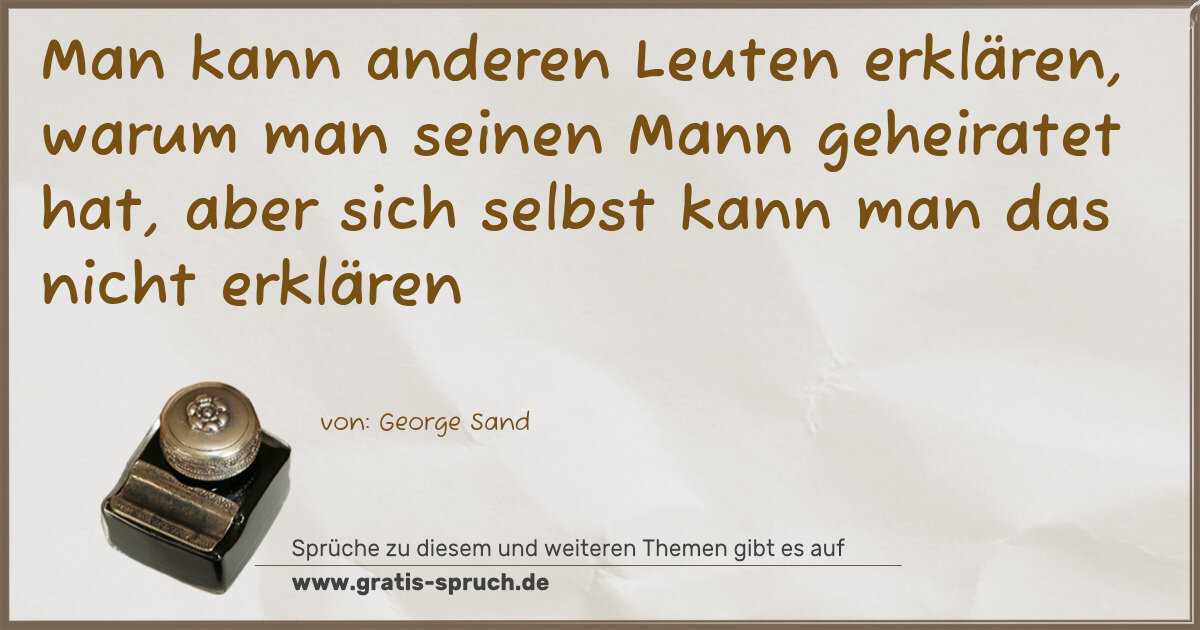 Man kann anderen Leuten erklären, warum man seinen Mann geheiratet hat, aber sich selbst kann man das nicht erklären