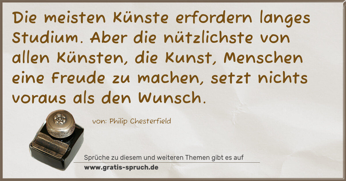 Die meisten Künste erfordern langes Studium. Aber die nützlichste von allen Künsten, die Kunst, Menschen eine Freude zu machen, setzt nichts voraus als den Wunsch.
