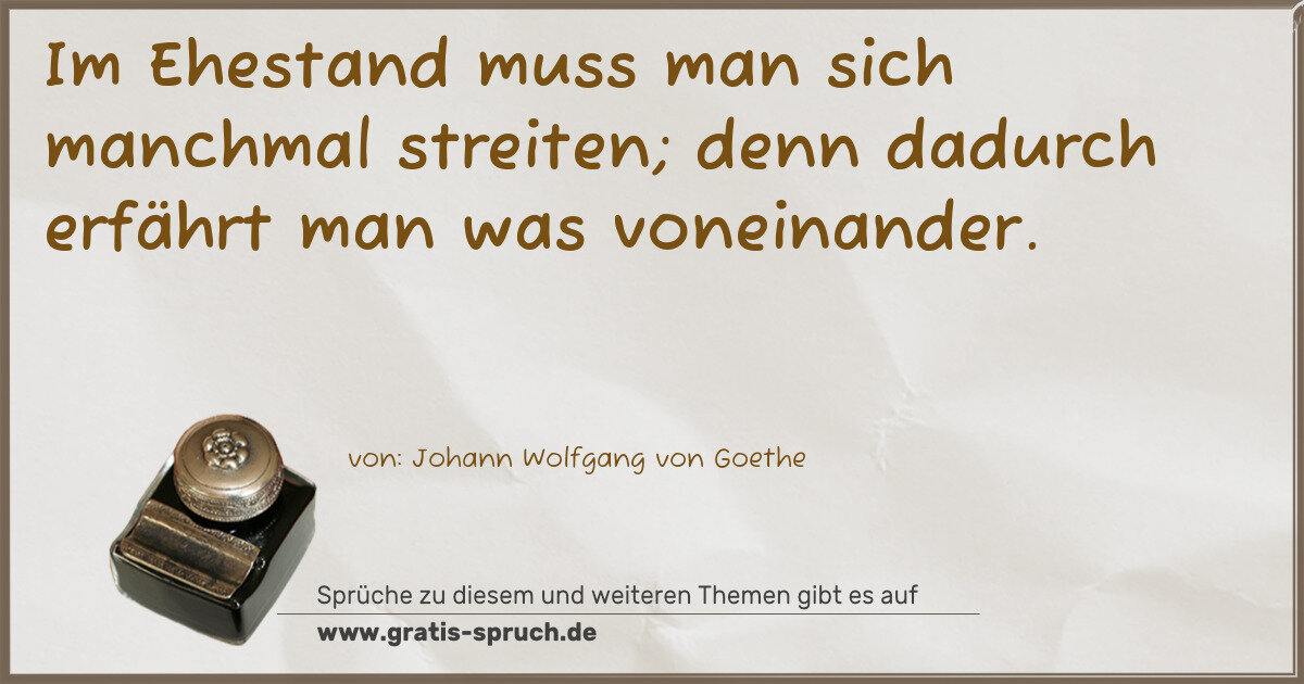 Im Ehestand muss man sich manchmal streiten; denn dadurch erfährt man was voneinander.