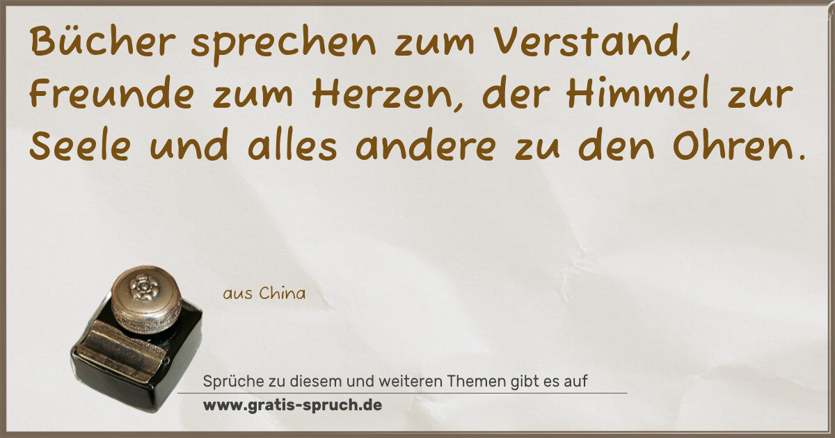 Bücher sprechen zum Verstand, Freunde zum Herzen, der Himmel zur Seele und alles andere zu den Ohren.