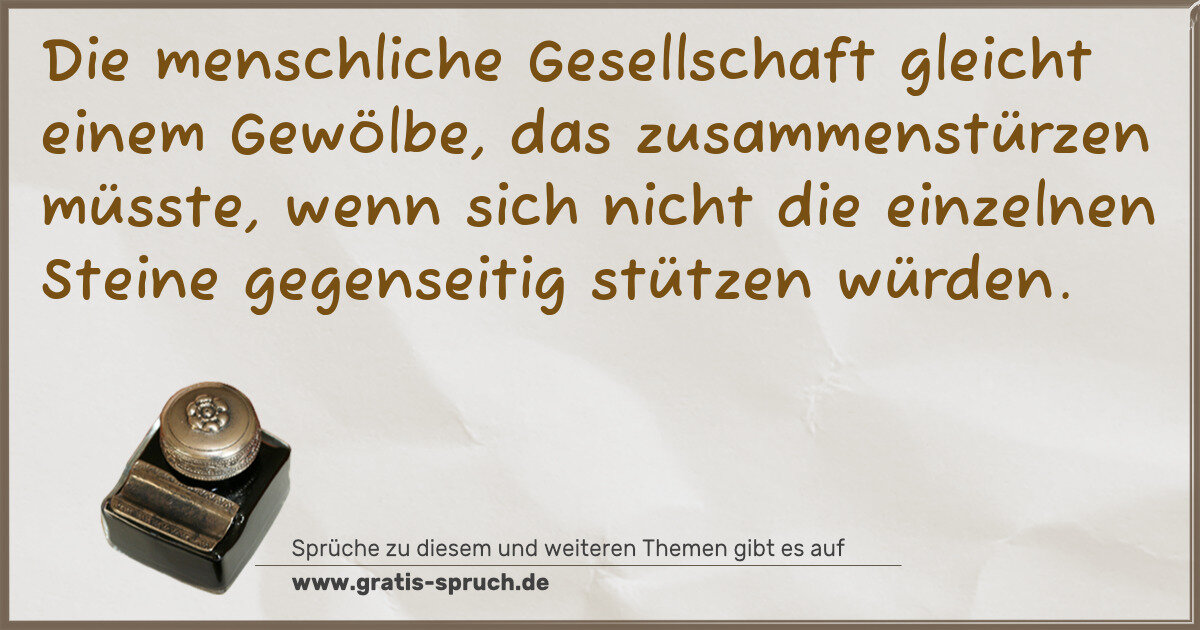 Die menschliche Gesellschaft gleicht einem Gewölbe, das zusammenstürzen müsste, wenn sich nicht die einzelnen Steine gegenseitig stützen würden.