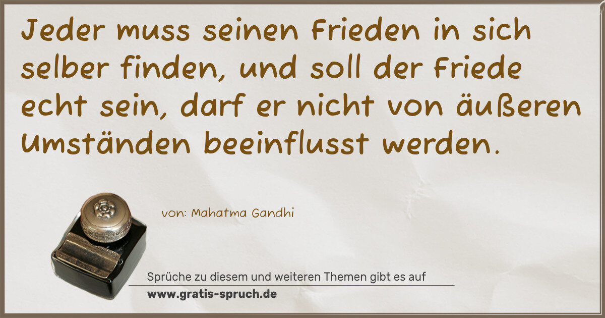 Jeder muss seinen Frieden in sich selber finden, und soll der Friede echt sein, darf er nicht von äußeren Umständen beeinflusst werden.