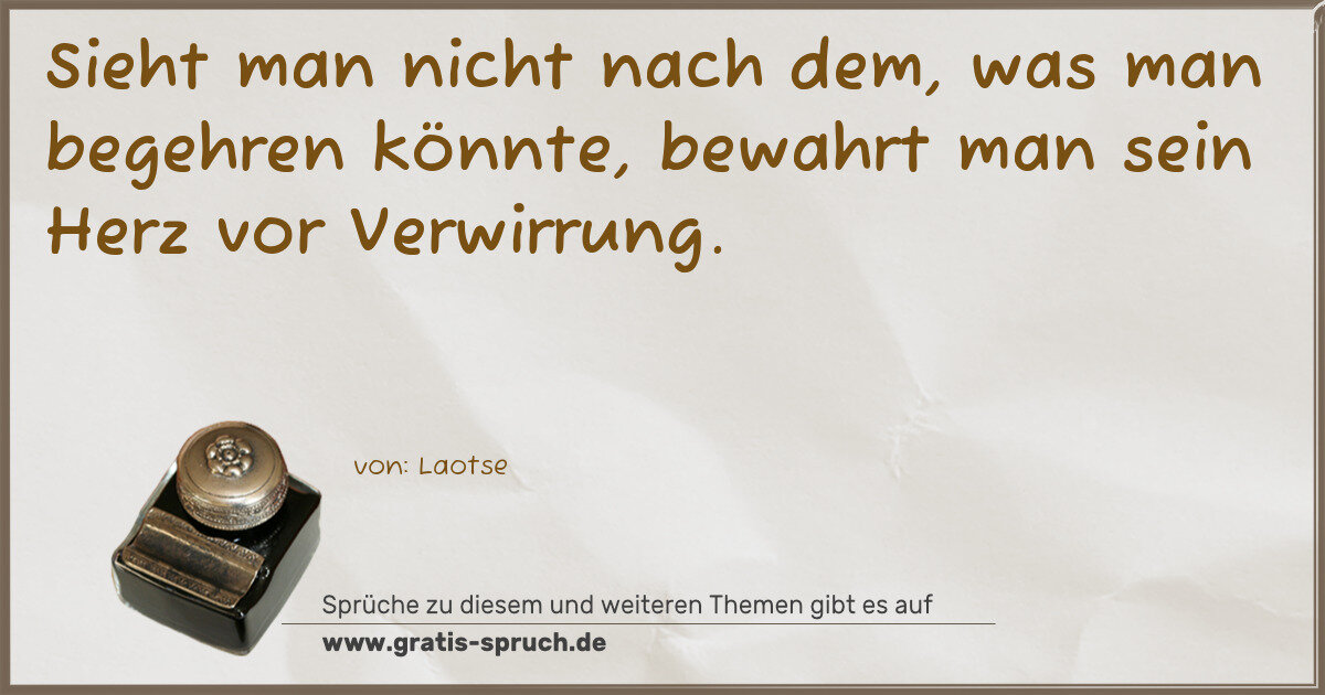 Sieht man nicht nach dem, was man begehren könnte, bewahrt man sein Herz vor Verwirrung.